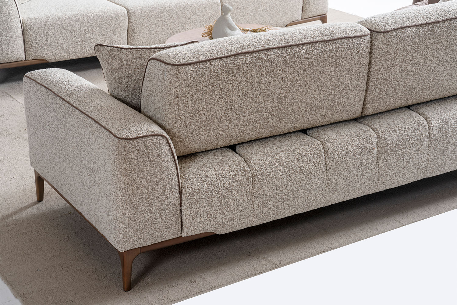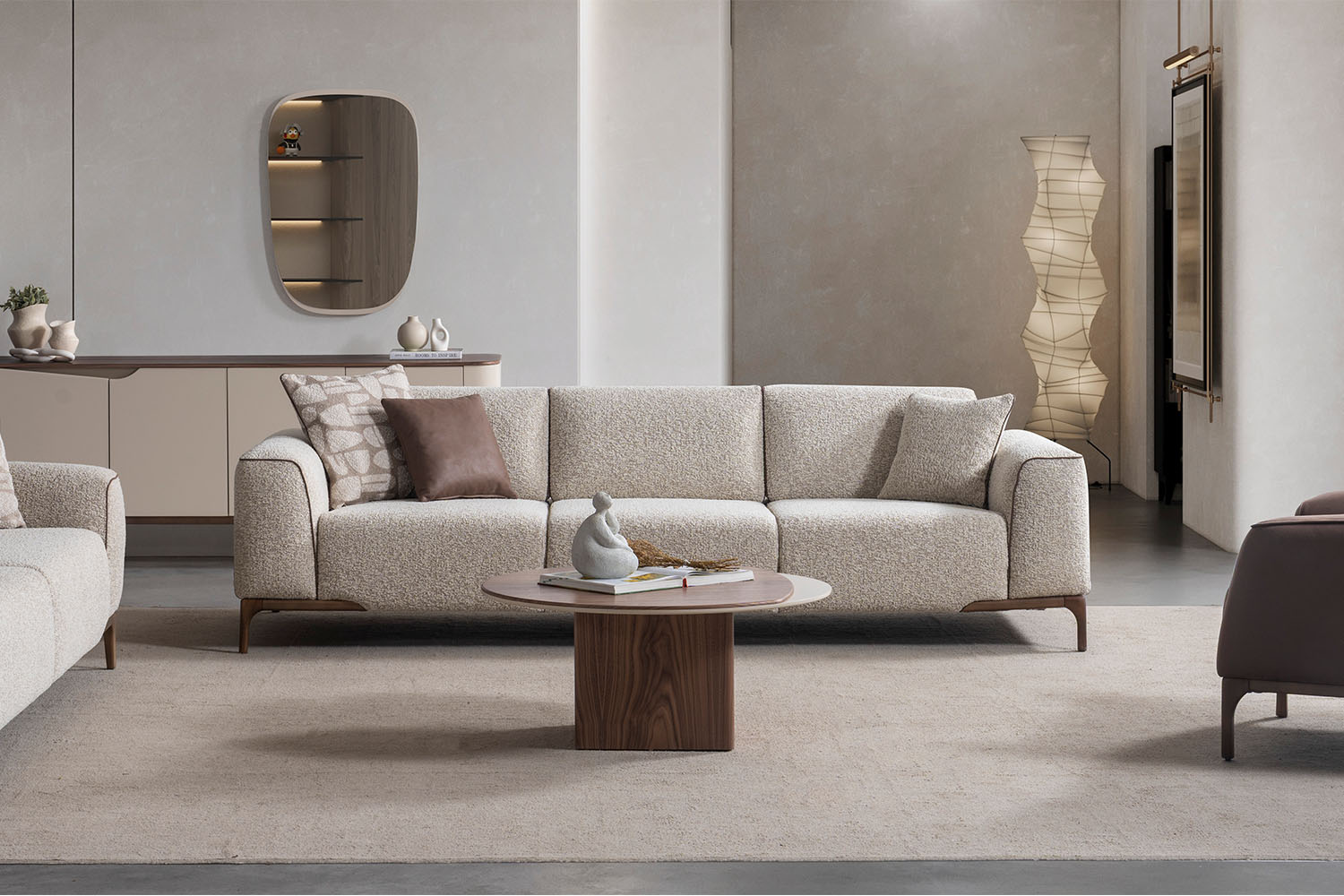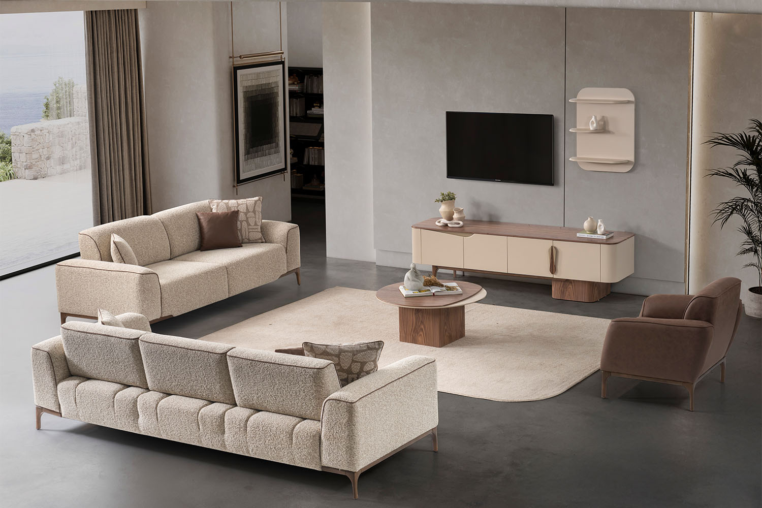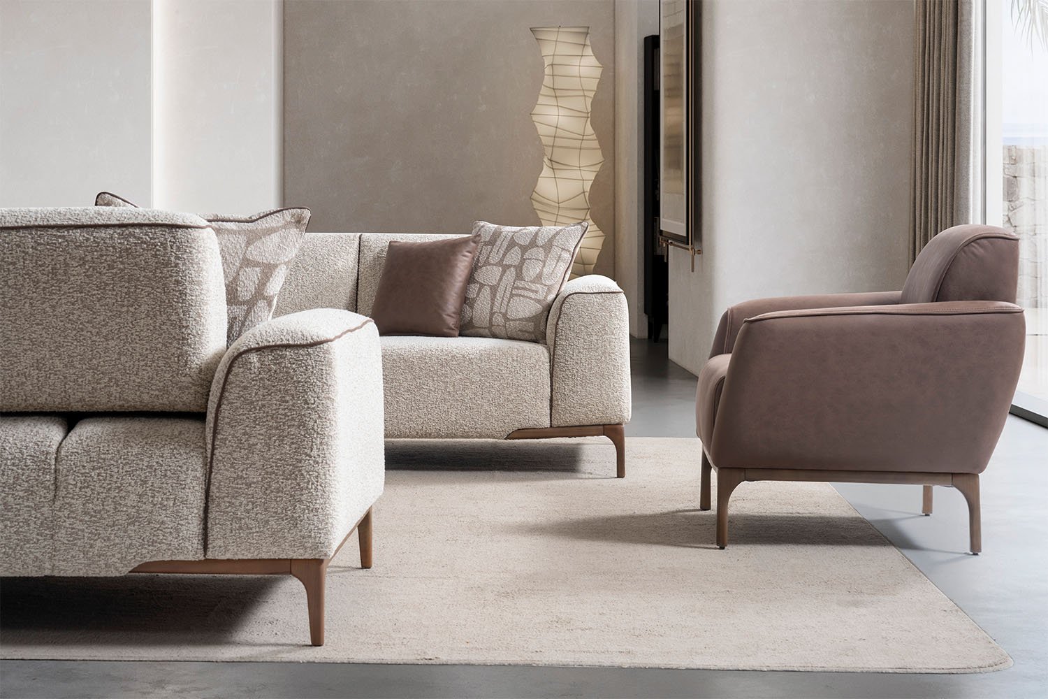 Modern çizgileri ve zarif duruşuyla dikkat çeken Aura Koltuk Takımı, yaşam alanınıza sıcak ve davetkâr bir atmosfer kazandırır. Yumuşak dokusu ve konforlu oturumu, keyifli dinlenme anları sunarken sade tasarımıyla her dekorasyon tarzına kolayca uyum sağlar. Şık detayları ve doğal renk tonlarıyla hem estetik hem de rahat bir yaşam alanı oluşturmak isteyenler için ideal bir seçimdir.