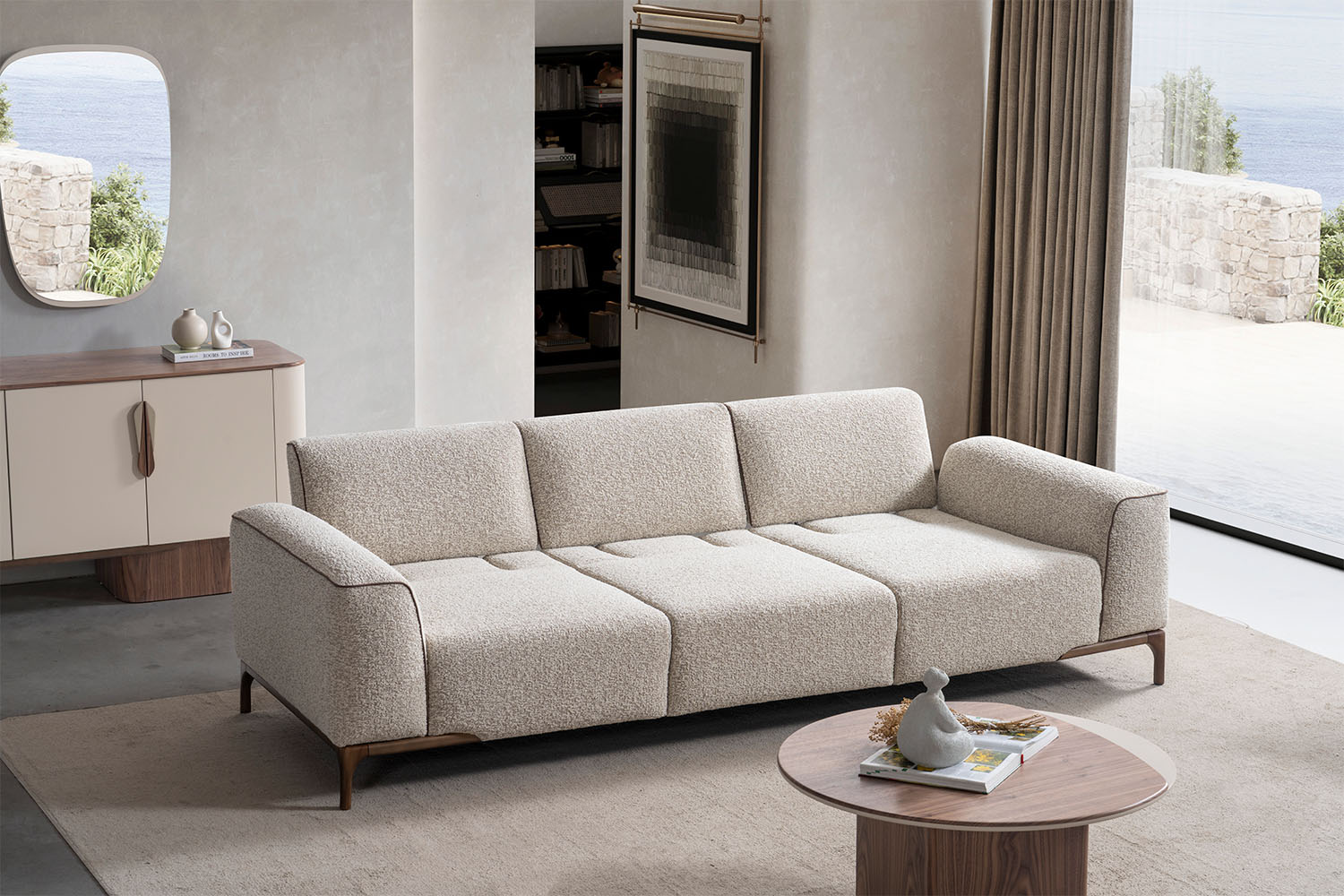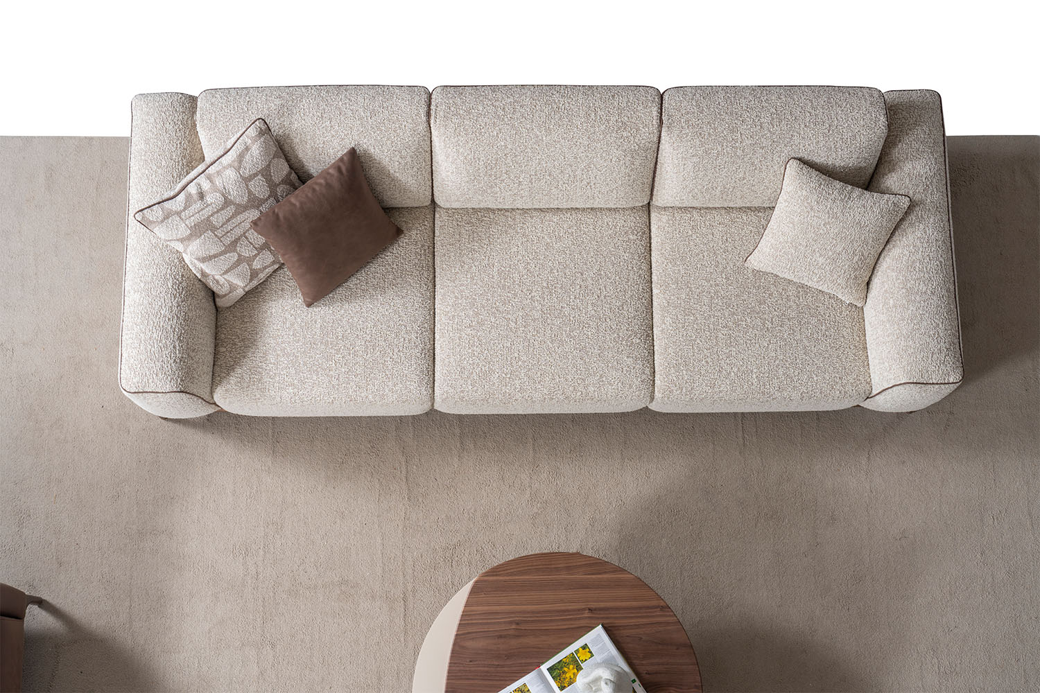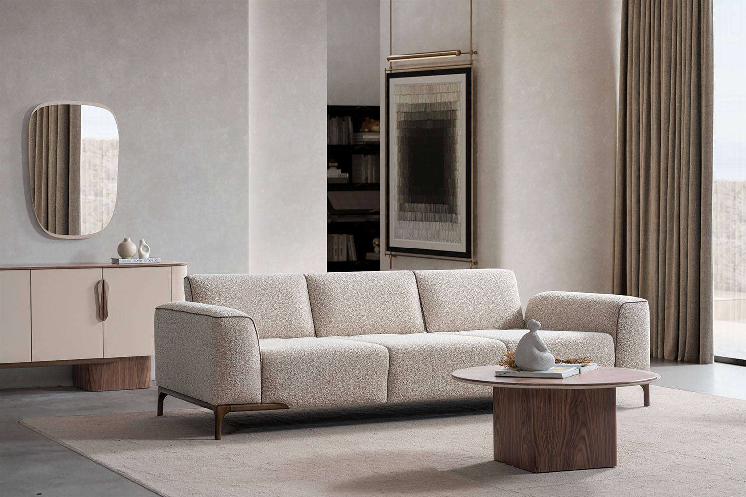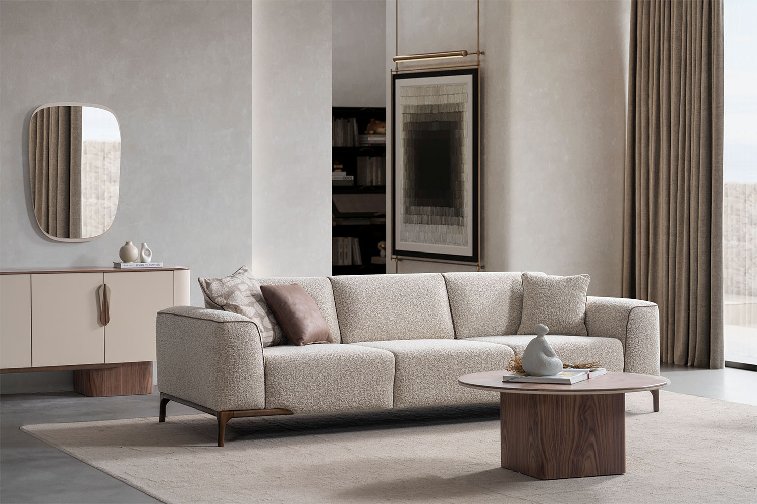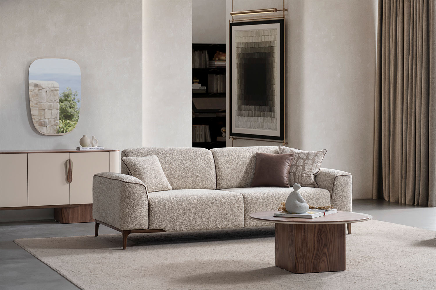 Modern çizgileri ve zarif duruşuyla dikkat çeken Aura Koltuk Takımı, yaşam alanınıza sıcak ve davetkâr bir atmosfer kazandırır. Yumuşak dokusu ve konforlu oturumu, keyifli dinlenme anları sunarken sade tasarımıyla her dekorasyon tarzına kolayca uyum sağlar. Şık detayları ve doğal renk tonlarıyla hem estetik hem de rahat bir yaşam alanı oluşturmak isteyenler için ideal bir seçimdir.
