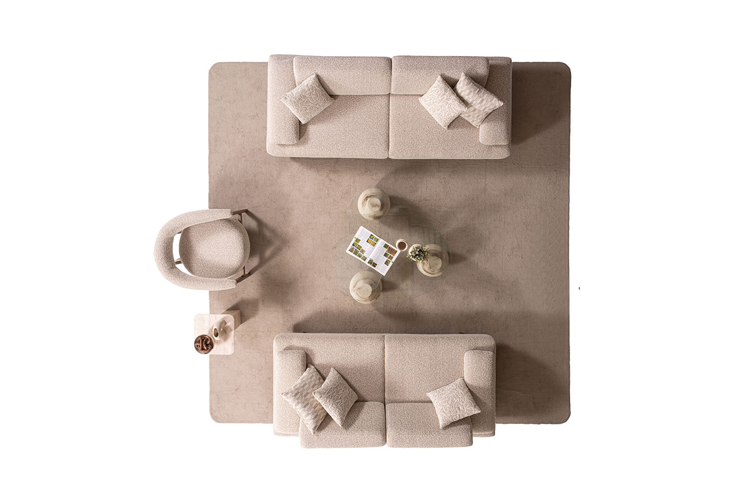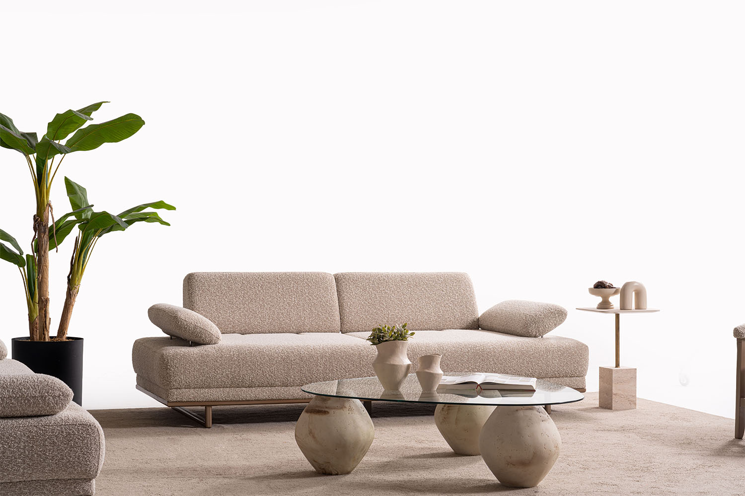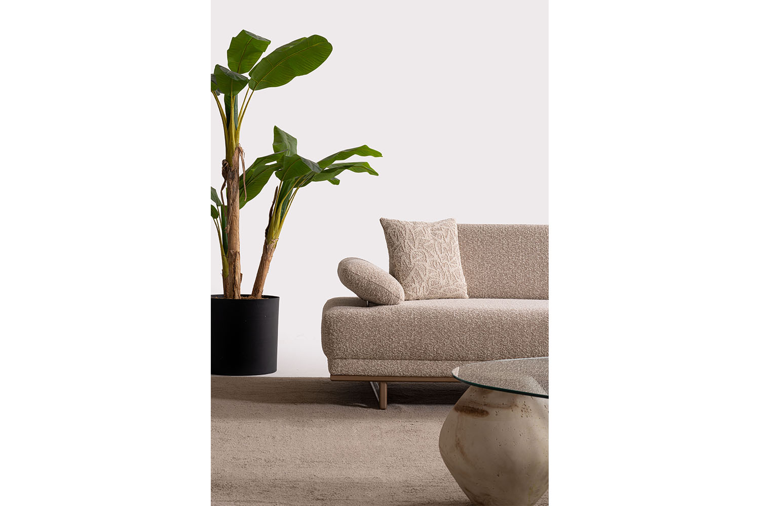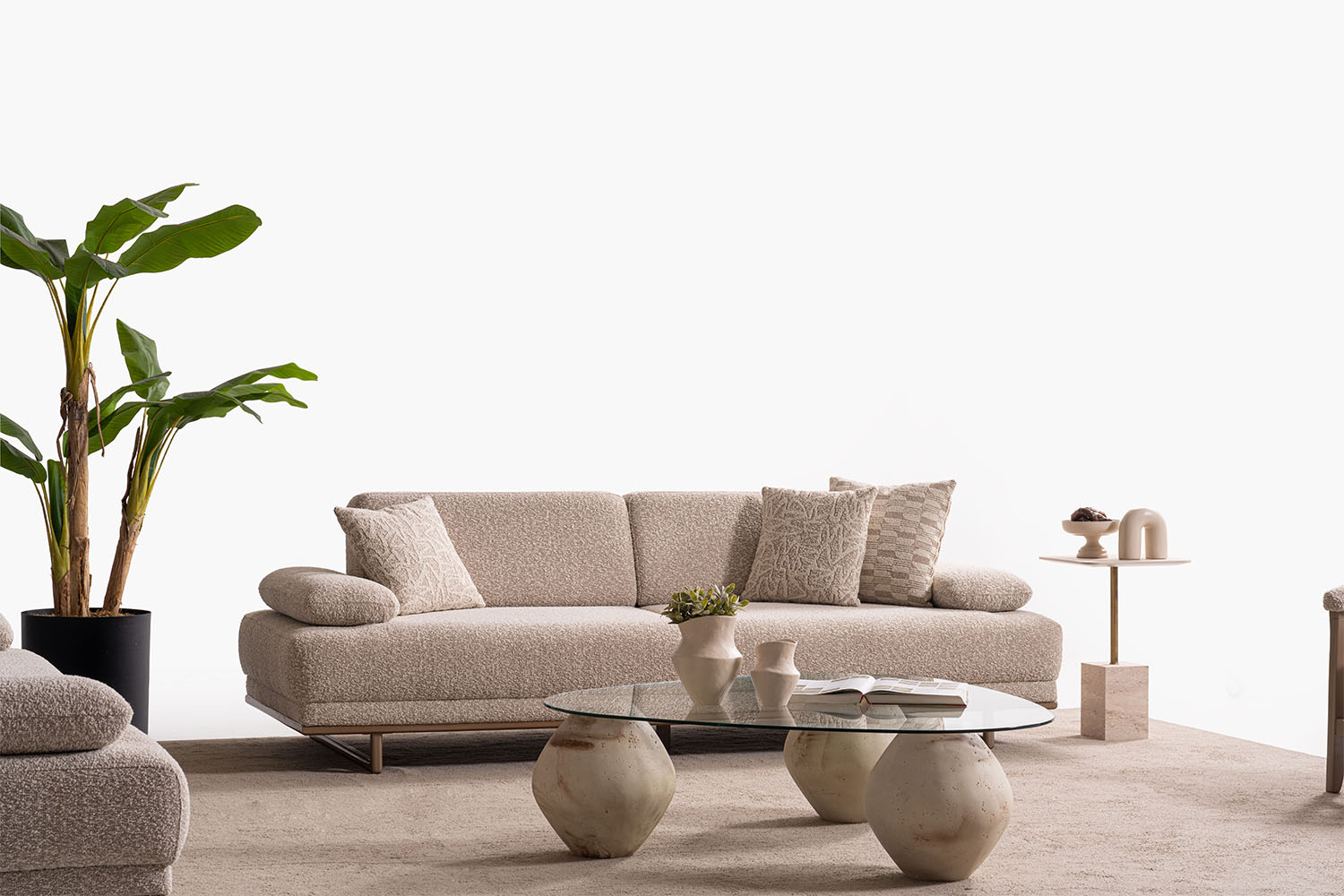 Bu koltuk takımı, sade ve zarif tasarımıyla modern yaşam alanlarına sıcak bir dokunuş katıyor. Yumuşak dokulu kumaşı, doğal tonları ve yuvarlak hatlarıyla konfor ve şıklığı bir arada sunuyor. Minimalist tarzı sayesinde her ortama kolayca uyum sağlar.