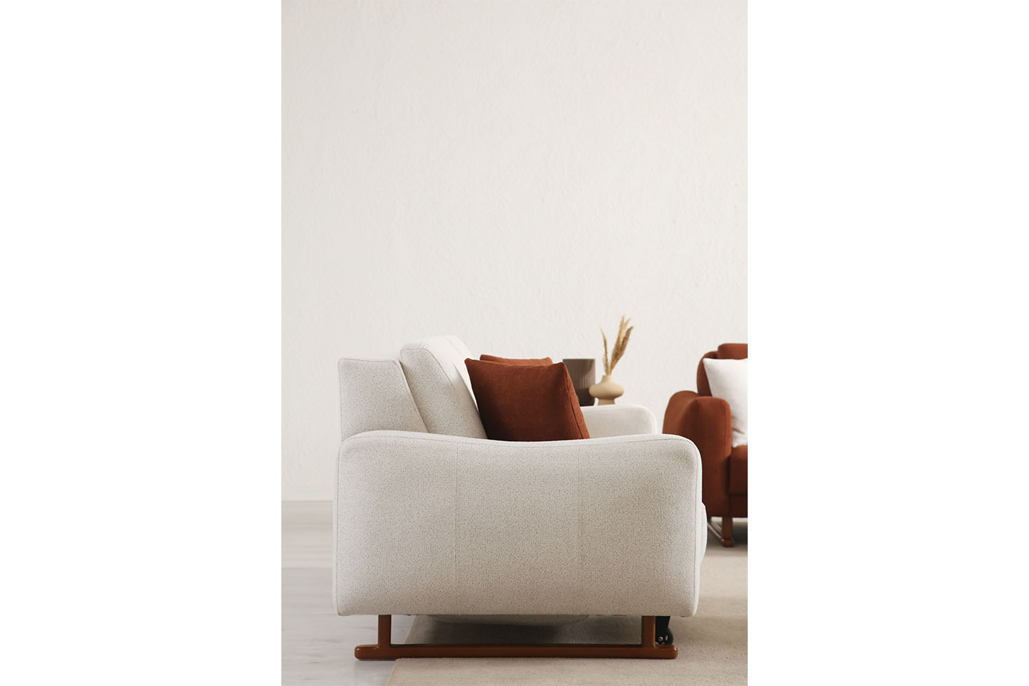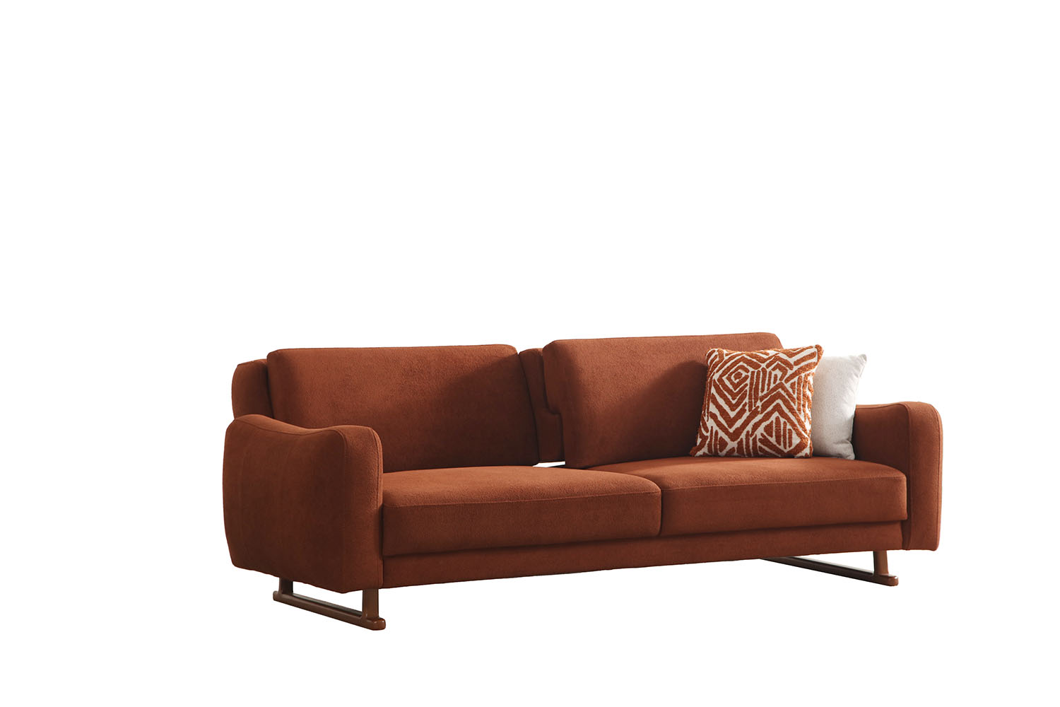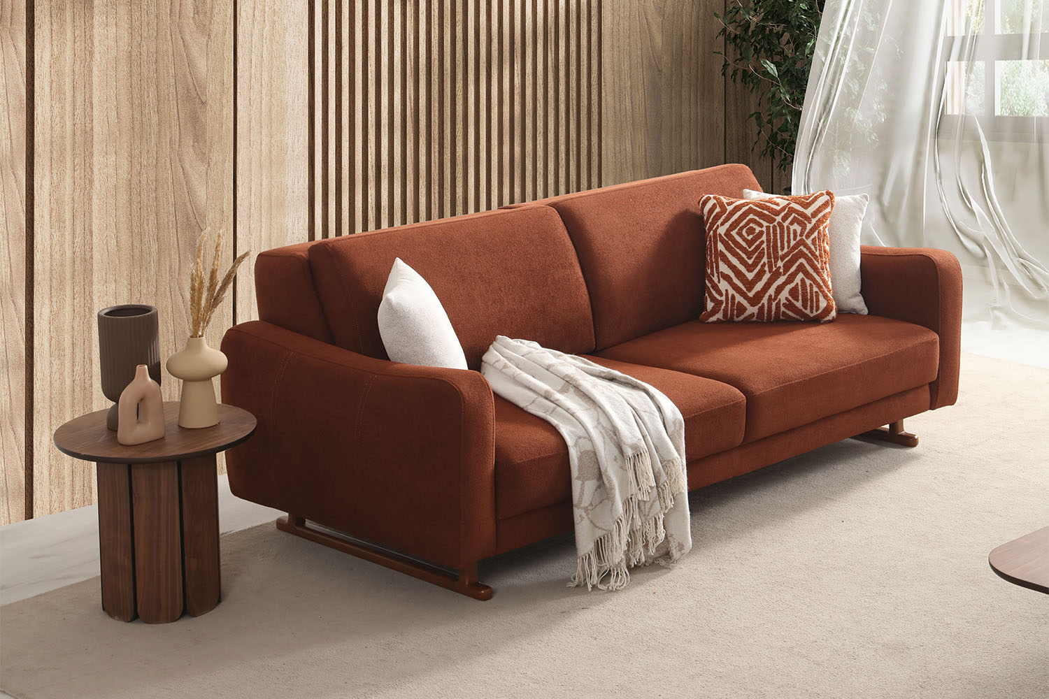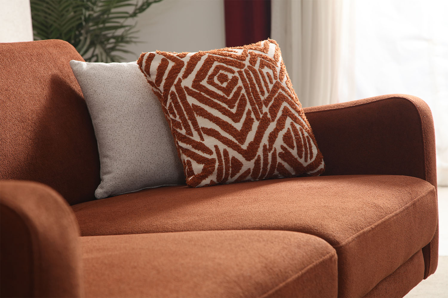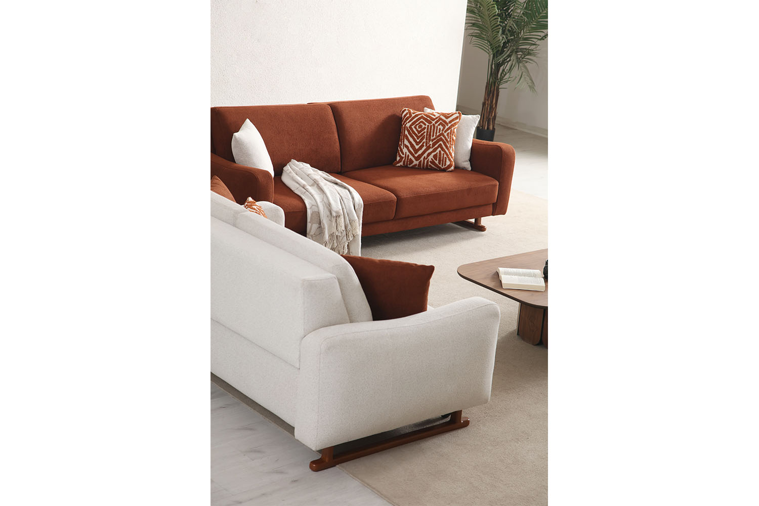 Sıcak tonları ve zarif hatlarıyla dikkat çeken bu koltuk takımı, modern tasarımıyla yaşam alanınıza doğal bir şıklık kazandırır. Konforlu oturumu ve yumuşak dokusu, uzun sohbetlere ve keyifli dinlenme anlarına eşlik eder. Renk kontrastı sayesinde mekâna derinlik katarken, sade formu her dekorasyon tarzına kolayca uyum sağlar. Hem estetik hem de rahat bir atmosfer arayanlar için ideal bir tercih.